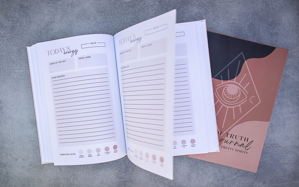 Welcome to your year of truth. The pages of this journal were thoughtfully created as the perfect companion to your daily rituals! Each month you will set your intentions, create your goals and plan your self-care and moon rituals. Enhance your intuition by pulling a card of the day and journaling your reflection of the message. With consistent use, you will manifest faster, have healthier mindfulness practices, and improve your self-awareness! In the monthly review, you’ll keep track of your wins, magical moments, and more. Close out your journal with a series of reflective questions about the joys and lessons you’ve experienced during your year.